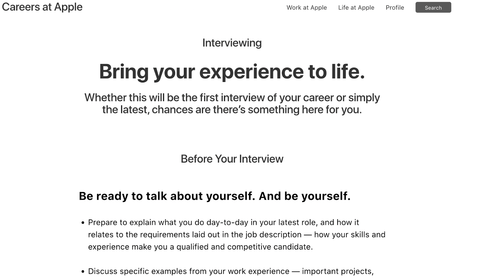 Apple supplies some handy interview tips for those bottom-of-funnel candidates.