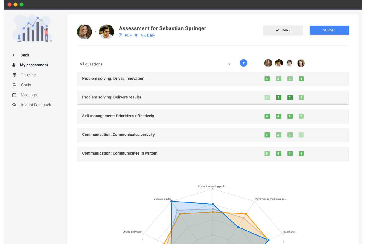 - People Managers You get real-time feedback, goal tracking, and coaching tools that help you guide your team’s growth.