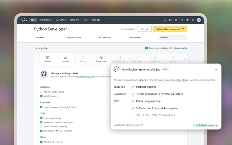 Verdict: By letting teams set the criteria, Workable ensures its AI supports real hiring needs, not just default assumptions.