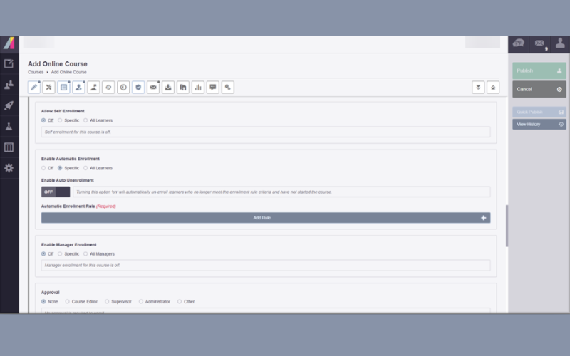 Additionally, its automation features enable automatic assignment of courses based on criteria such as start dates and department roles, ensuring consistent and timely training delivery without manual intervention.
